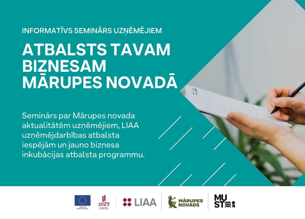 10. martā Latvijas Investīciju un attīstības aģentūras (LIAA) pārstāvniecība Jūrmalā sadarbībā ar Mārupes novada pašvaldību aicina uzņēmējus uz informatīvu semināru “Atbalsts tavam biznesam Mārupes novadā: seminārs par uzņēmējdarbības atbalsta iespējām”.