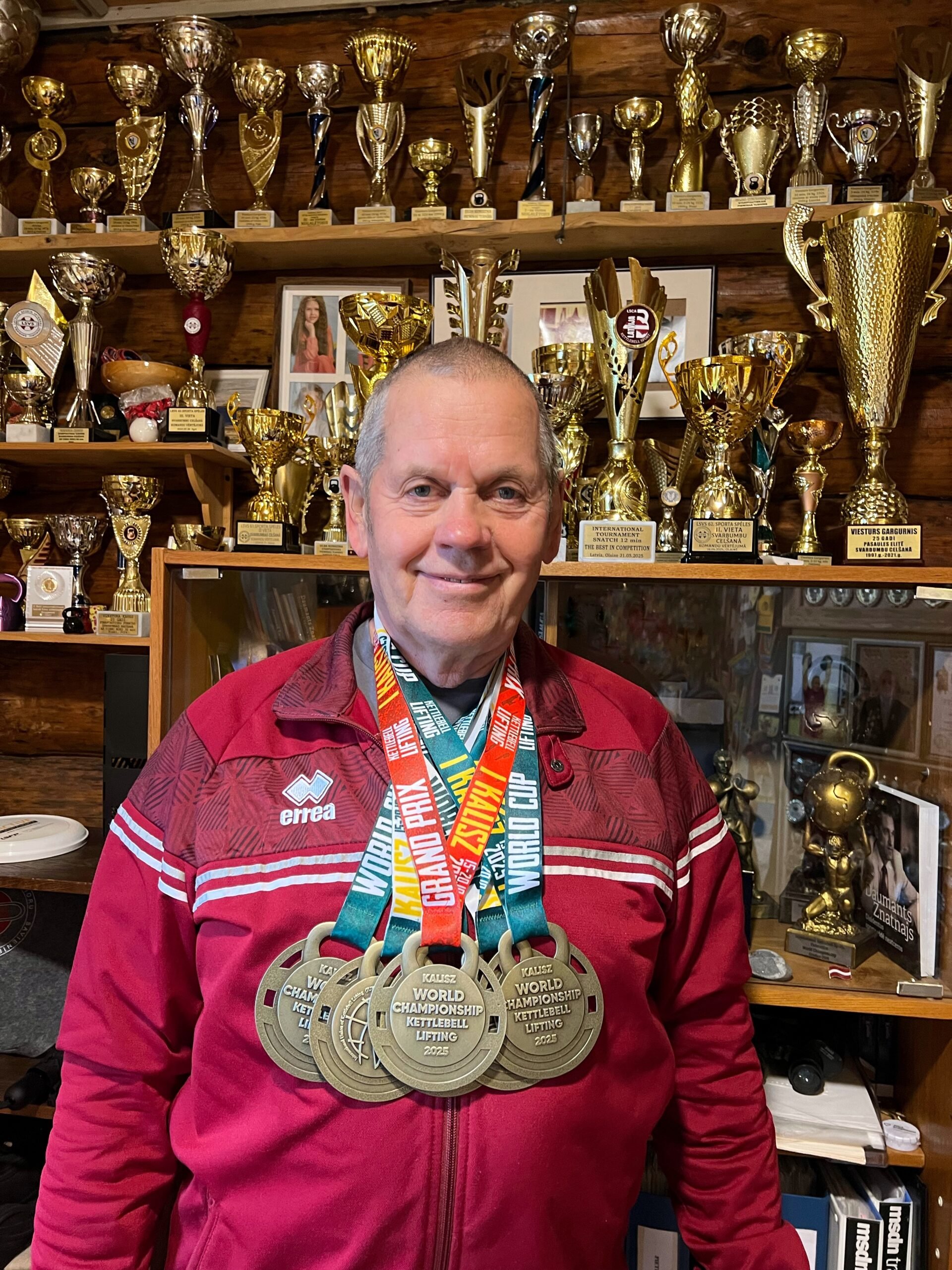 – Medaļu man ir teju tūkstotis – kopā pa divdesmit trīs sporta veidiem. Kausi nu jau ir pāri simtam, Ginesa rekordi – pieci.