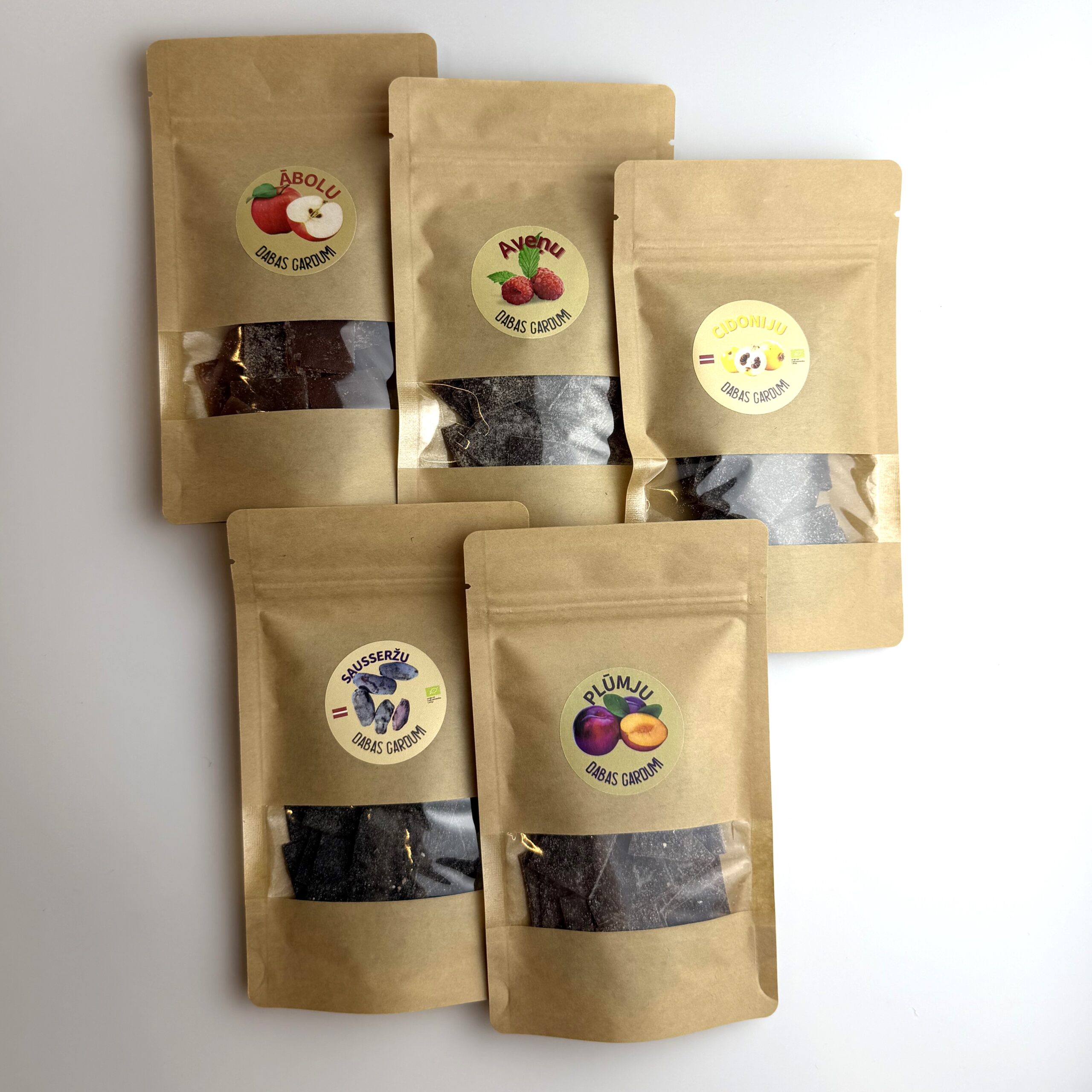 Dabas gardumi augļu ogu konfektes, dažādi veidi: ābolu, aveņu, cidoniju, sausseržu, plūmjuDaudzums: 60gRažotājs: Bioloģiskā saimniecība IK Dabas gardumiRažots: Mārupes novadā, LatvijāPreces kods: T0190