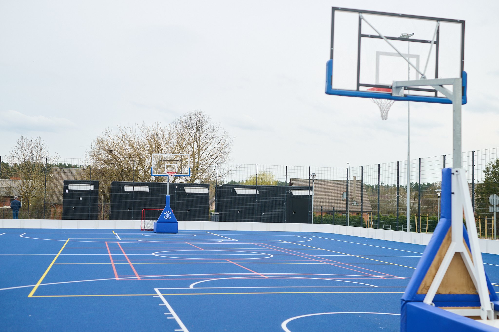 - divi sintētiskā seguma sporta spēļu multifunkcionālie laukumi, kur varēs spēlēt basketbolu, volejbolu, florbolu, tenisu, badmintonu un futbolu.